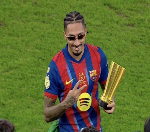 而在本场西超杯决赛中,拉菲尼亚梅开二度,当选比赛最佳球员。