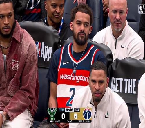 你看!华盛顿奇才的中场休息期间,球队为约翰・沃尔举办了特别纪念仪式。而在奇才替补席上,特雷・杨的身影格外醒...